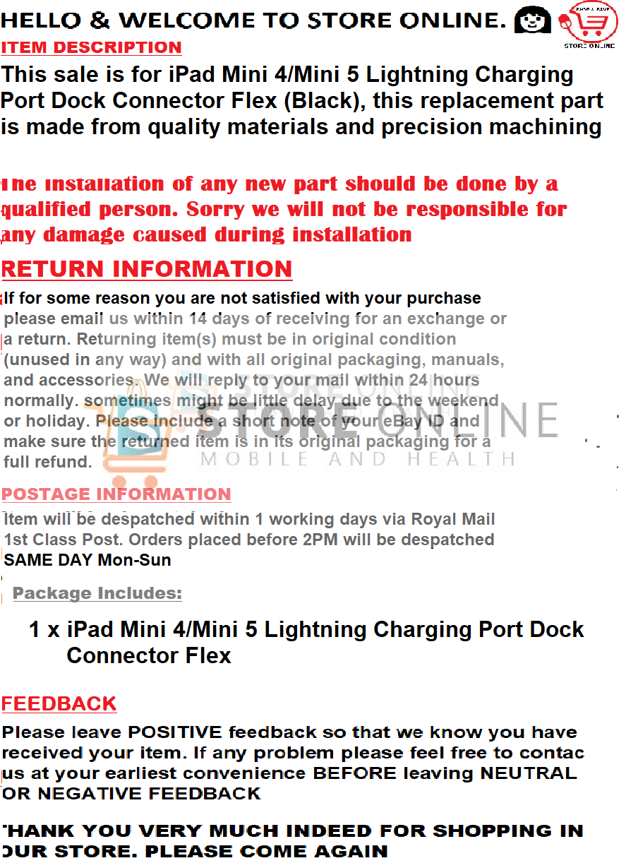 SAME DAY DESPATCH BY 2PM