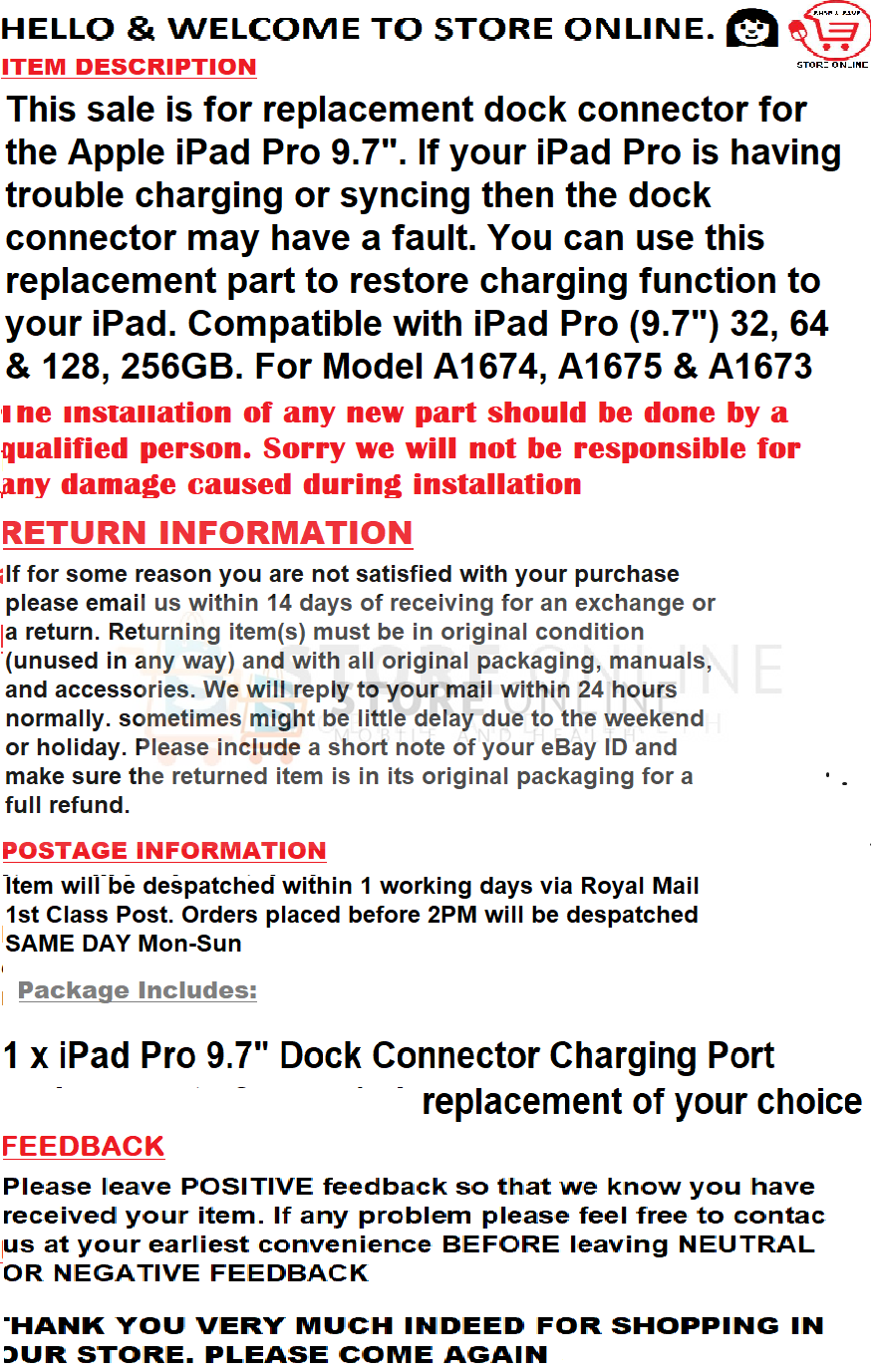 / For iPad Pro 9.7″ Charging Port Replacement