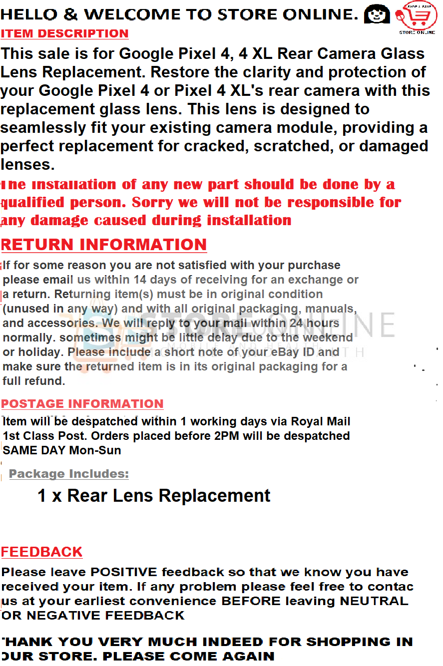 Google Pixel 4, 4XL Rear Camera Glass Lens Replacement quantity