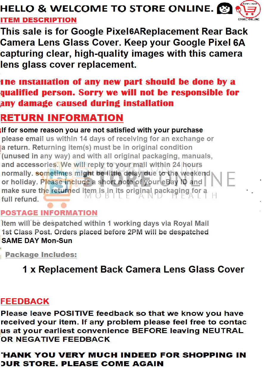 Google Pixel 6A Replacement Back Camera Lens Glass Cover quantity