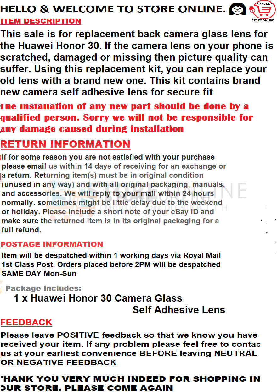 Huawei Honor 30 Camera Glass Lens Replacement