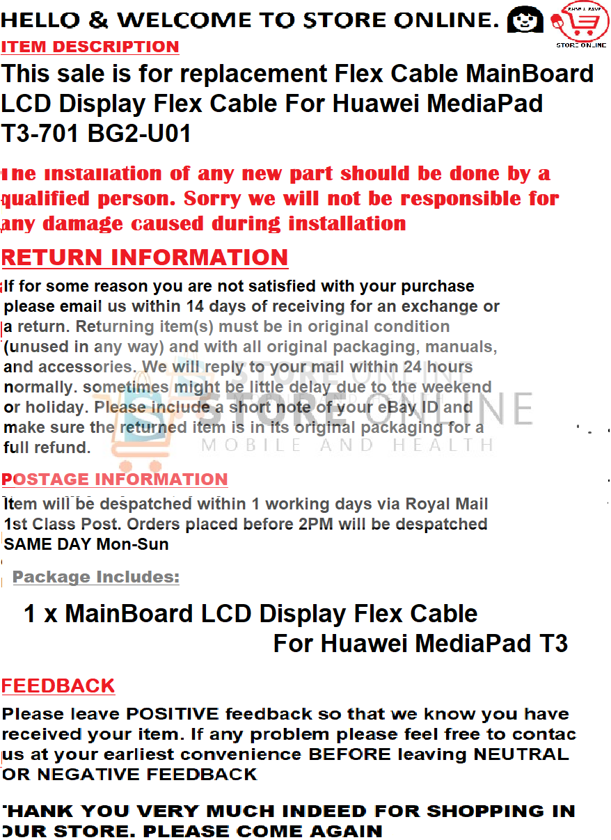 Huawei Mediapad T3 7.0″ LCD Display Replacement Flex Cable