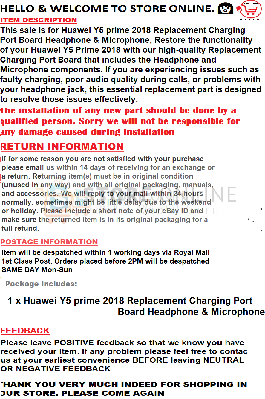 / Huawei Y5 Prime 2018 Replacement Charging Port