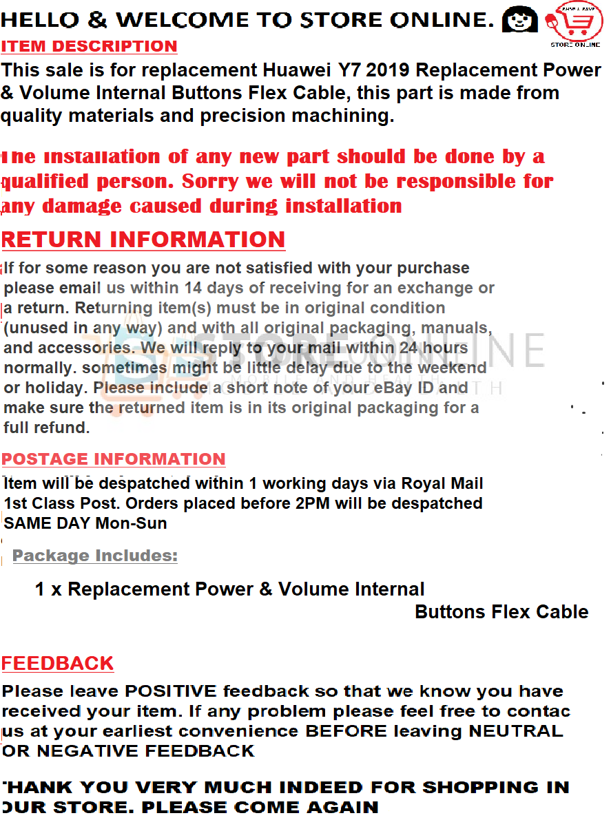 Huawei Y7 2019 Replacement Power & Volume Flex Cable quantity