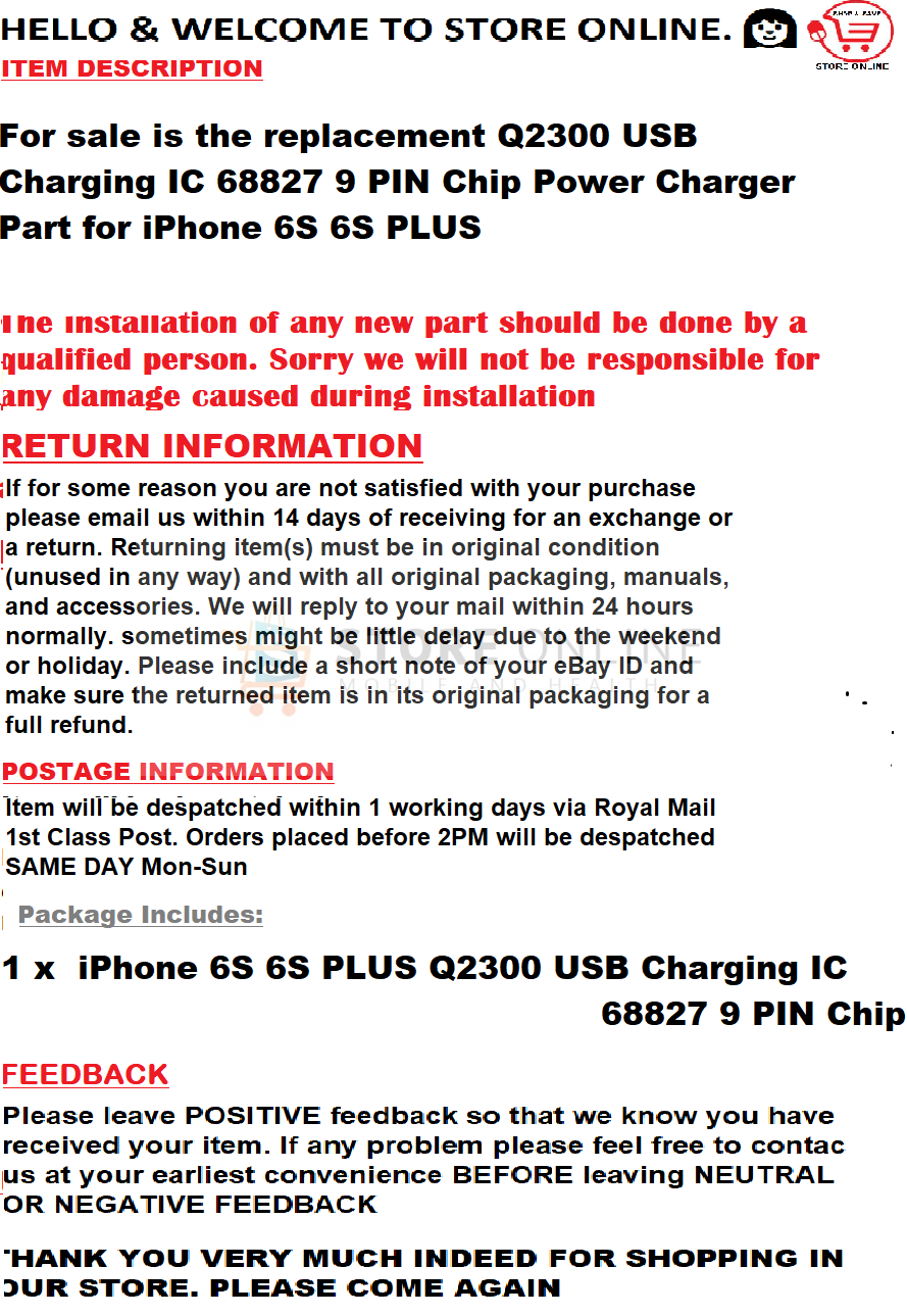 iPhone 6S 6S PLUS Q2300 USB Charging IC 68827 9 PIN Chip