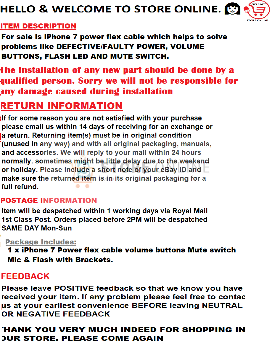iPhone 7 Power Flex Cable Volume Buttons Mute Switch Mic & Flash With Brackets