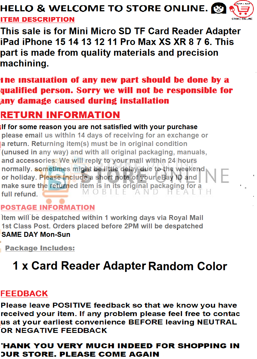/ iPhone iPad Mini Micro SD TF Card Reader Adapter
