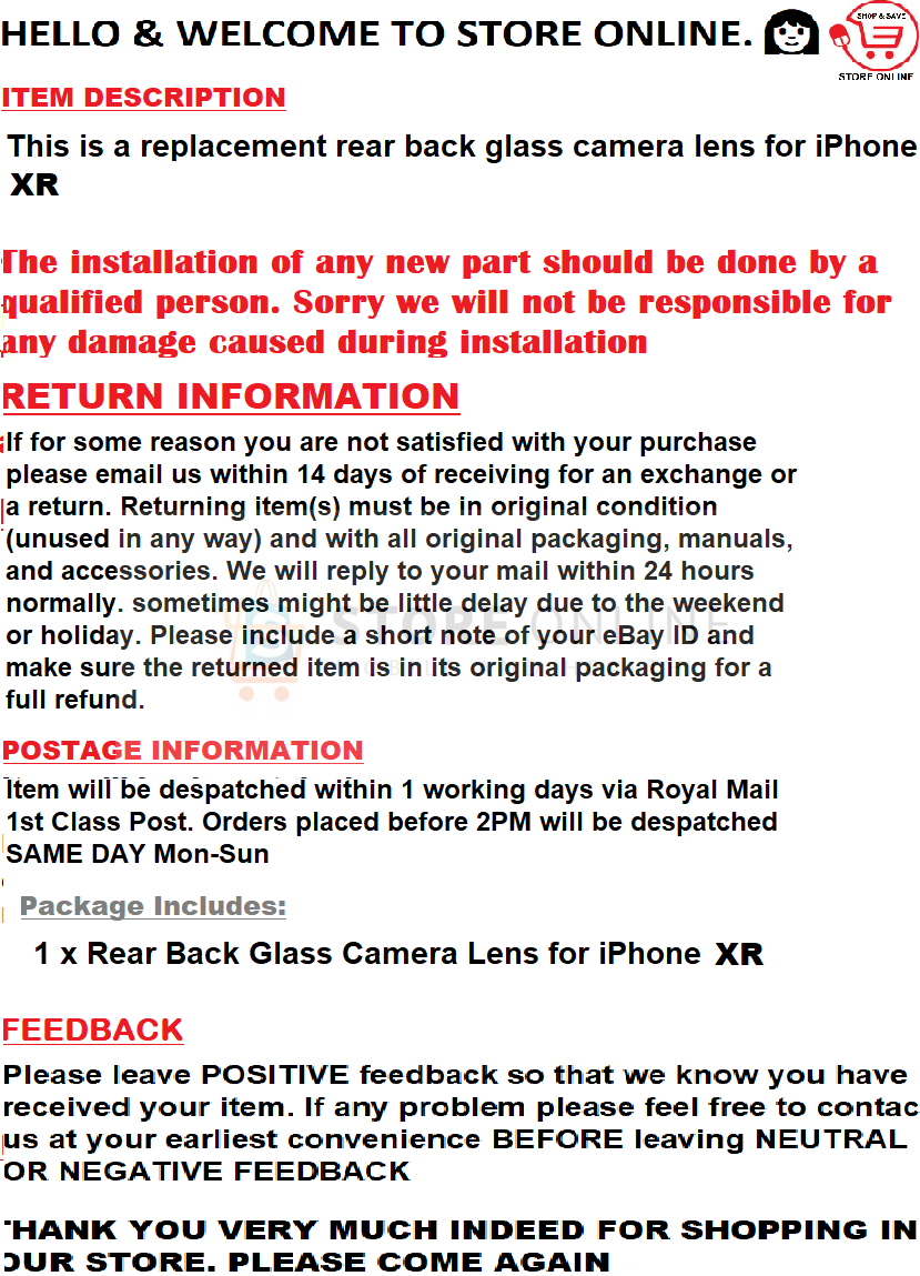 iPhone XR Replacement Rear Back GLASS Camera Lens Cover with Adhesive