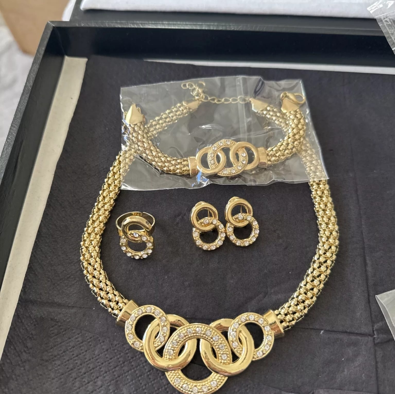 Ladies Rhinestone Studded Imitation Pearl Necklace Earring Bracelet Ring Party