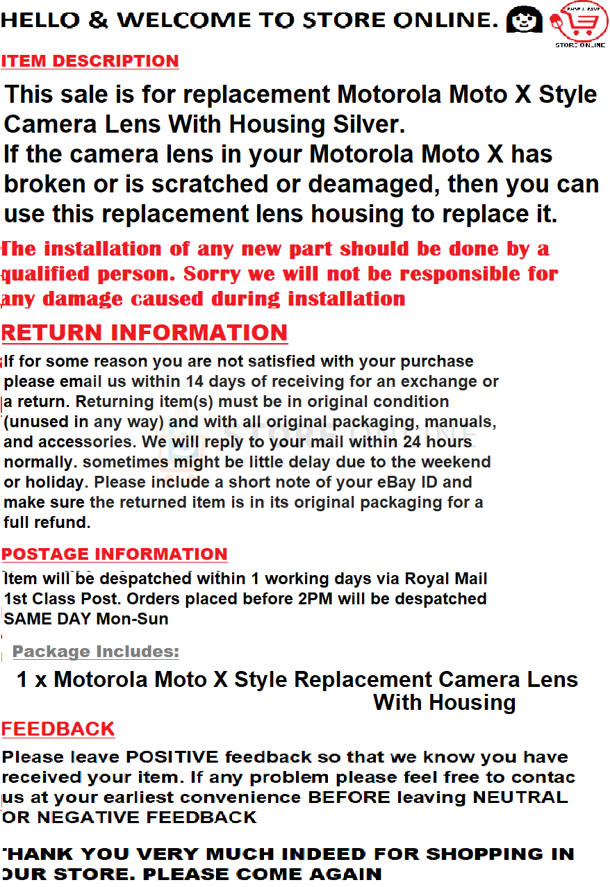 Motorola Moto X Style Camera Lens Cover Replacement Housing Panel