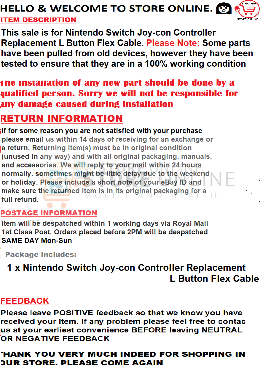 Nintendo Switch Controller Replacement L Button Flex Cable quantity