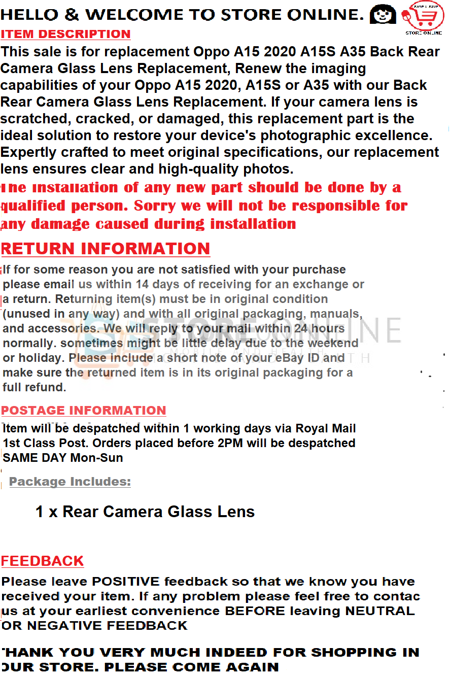 / Oppo A15 2020 A15S A35 Back Rear Camera Glass Lens Replacement