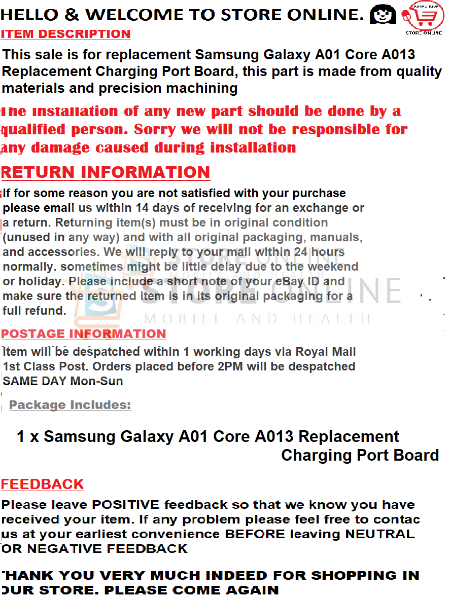 / Samsung Galaxy A01 Core Replacement Charging Port Board