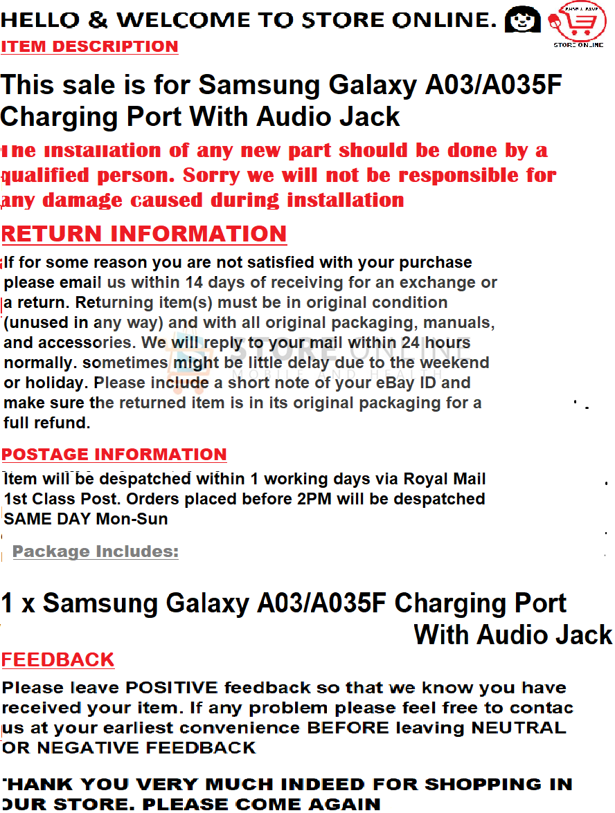 Samsung Galaxy A03 A035 Charging Port Replace quantity