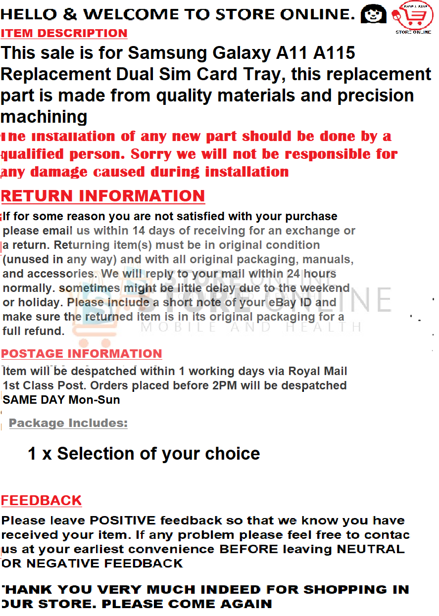 / Samsung Galaxy A11 A115 Replacement Dual Sim Card Tray