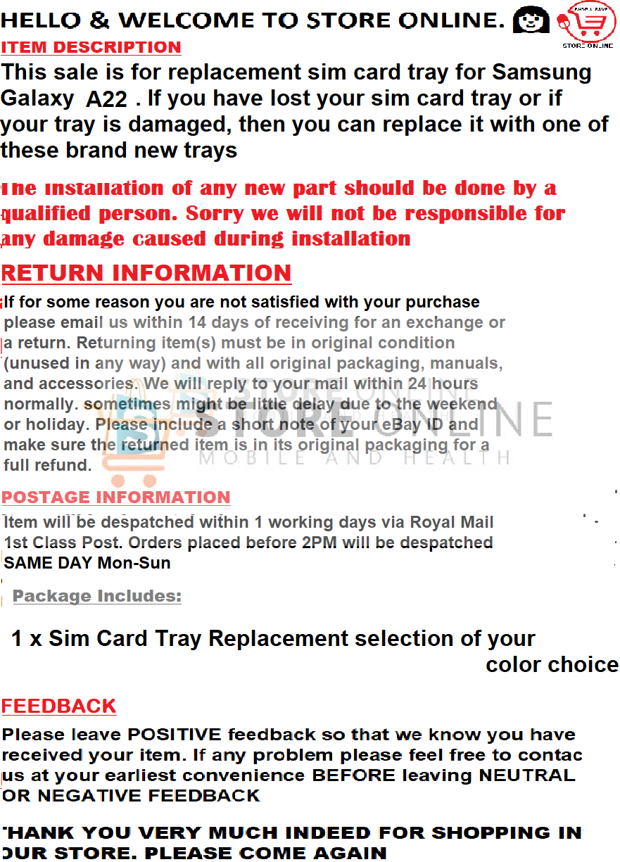 / Samsung Galaxy A22 4G/5G Sim Tray Holder