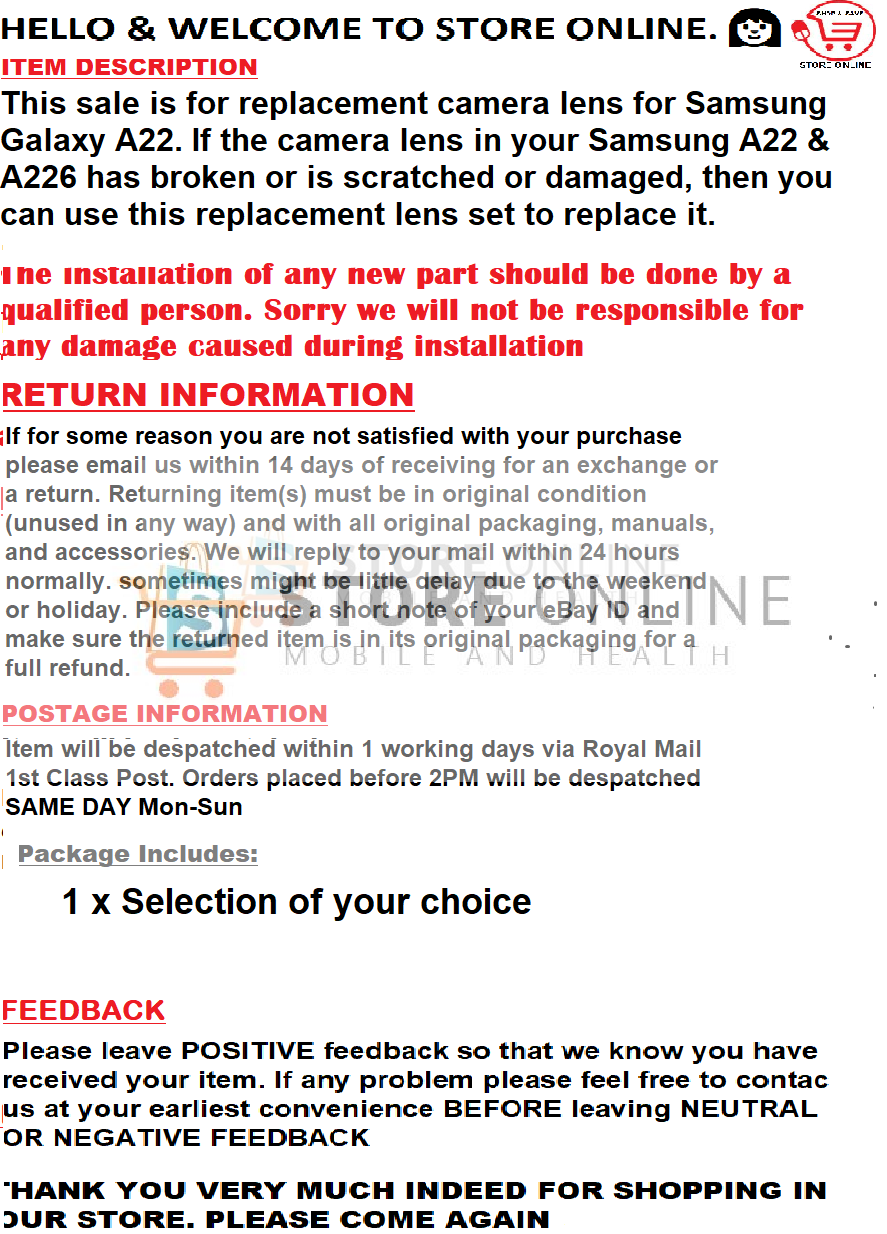 Samsung Galaxy A22 5G Replacement Back Camera Glass Cover quantity