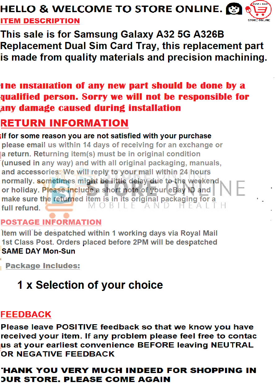 / Samsung Galaxy A32 5G A326B Replacement Dual Sim Card Tray