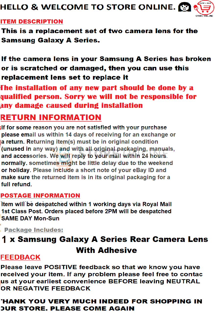 Samsung Galaxy A40 A405 Rear Back Camera Glass Lens With Adhesive