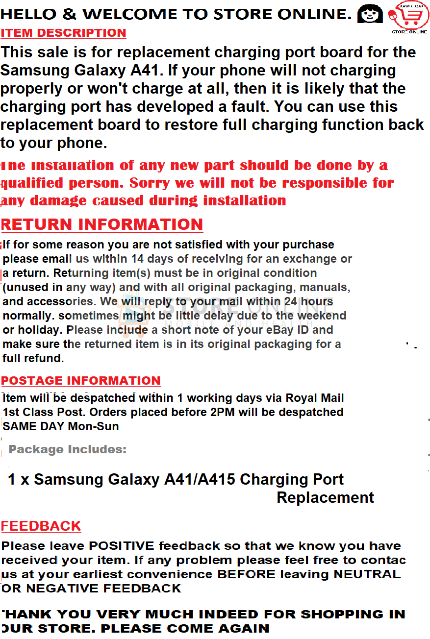 Samsung Galaxy A41 A415 Charging Port