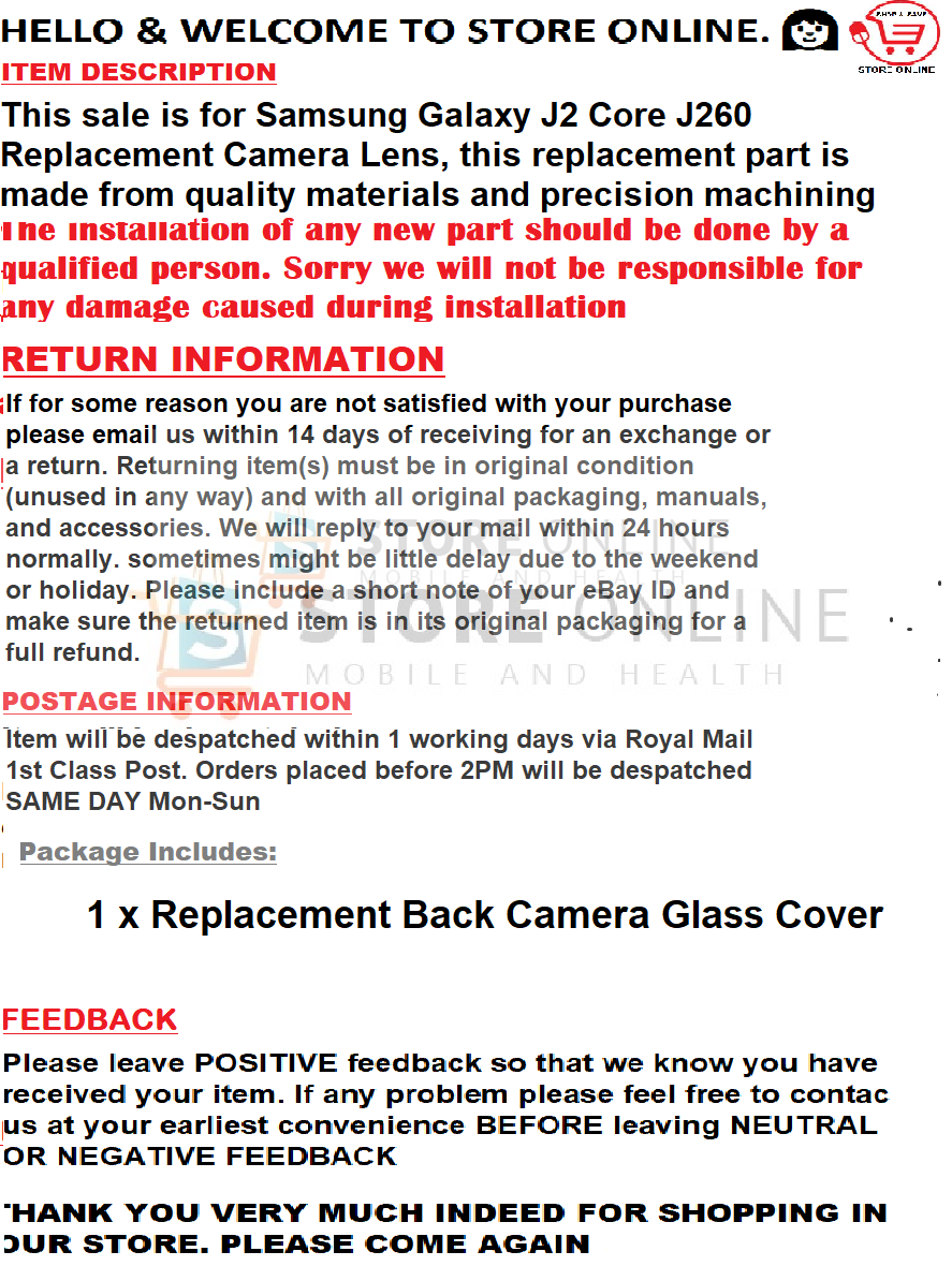 / Samsung Galaxy J2 Core J260 Rear Back Camera Glass Cover