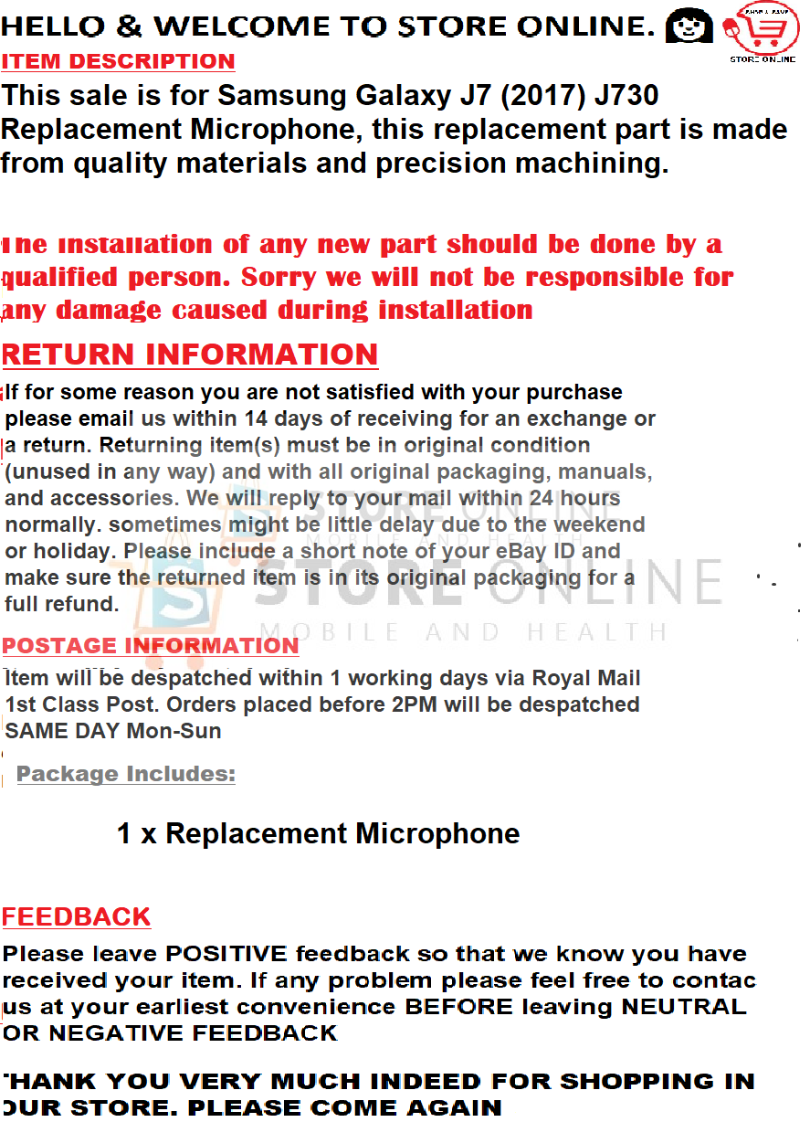 / Samsung Galaxy J7 2017 J730 Replacement Microphone