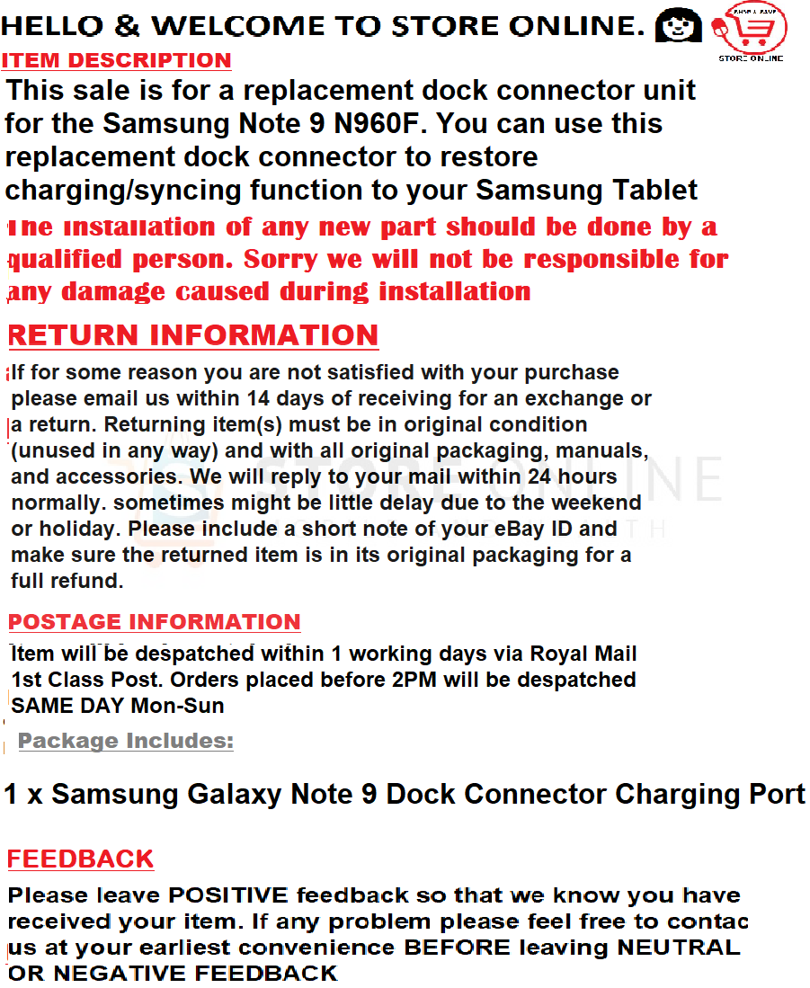 Samsung Galaxy Note 9 N960F Charging Port quantity