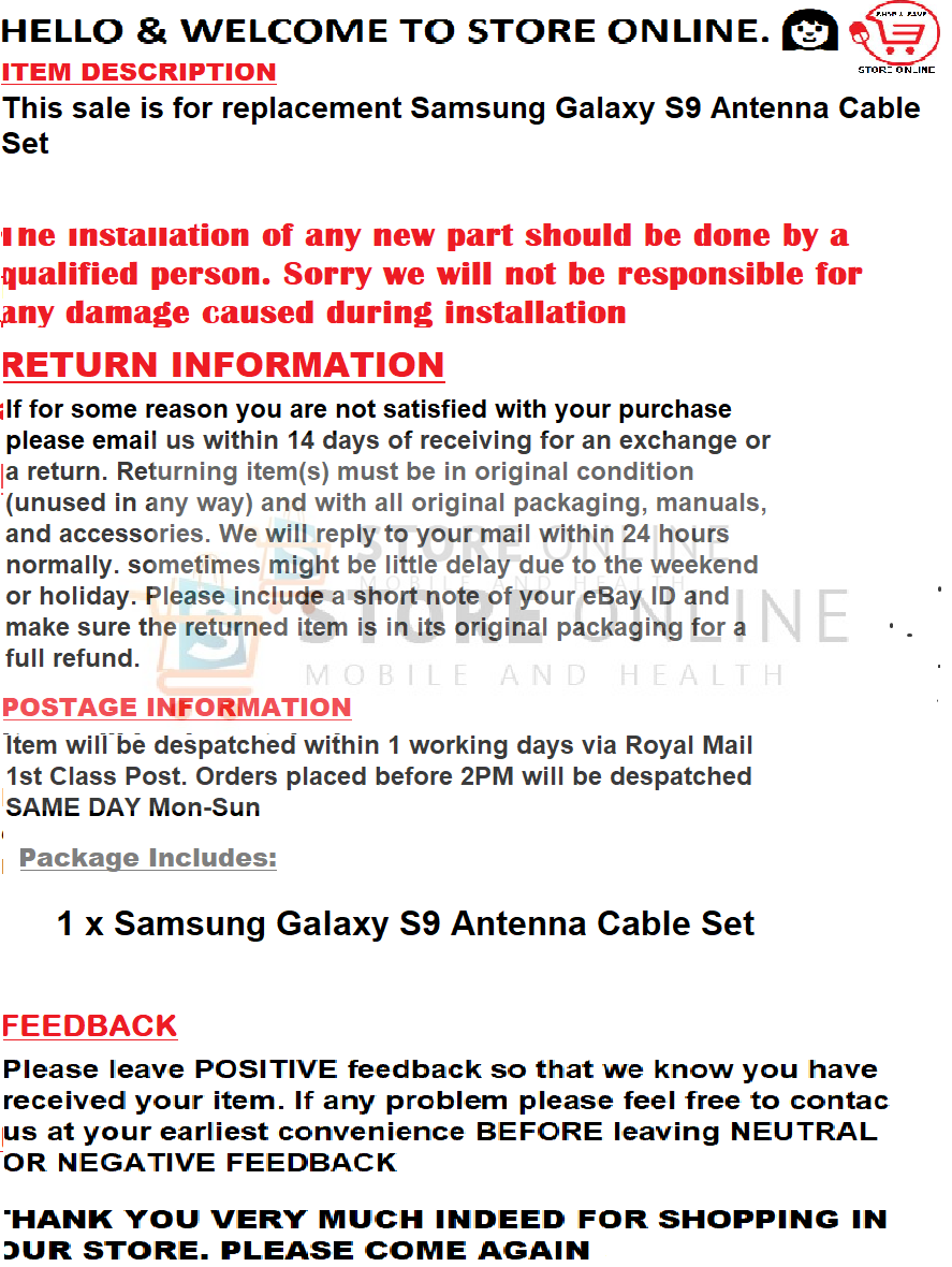 / Samsung Galaxy S9 Replacement Antenna Cable Set