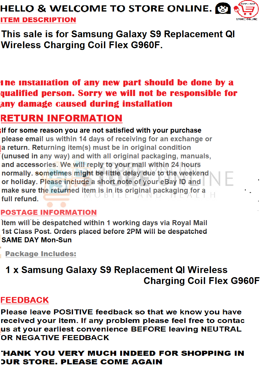 / Samsung Galaxy S9 Replacement Qi Wireless Charging Coil Flex
