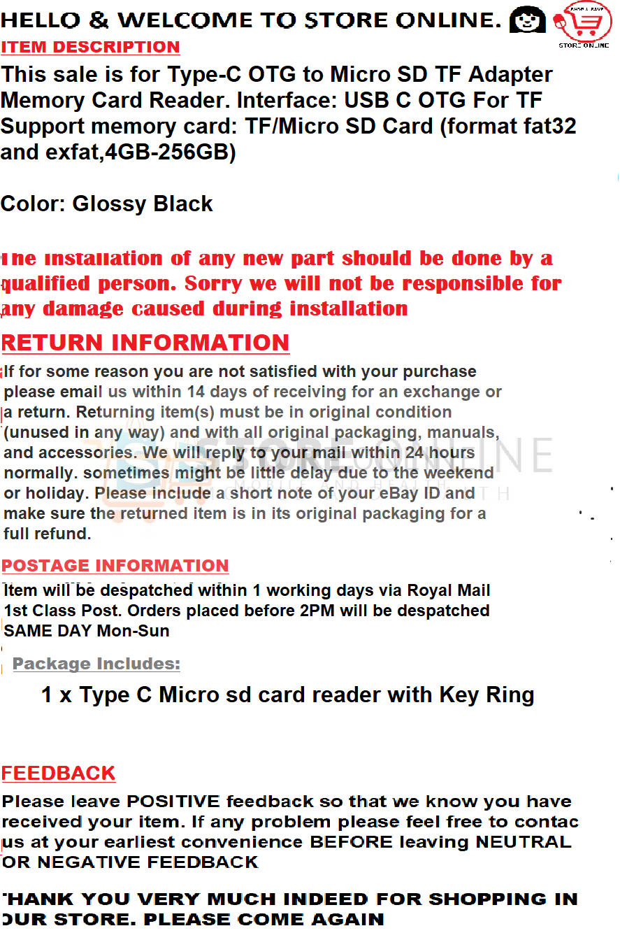 THANK YOU VERY MUCH INDEED FOR BUYING WITH US.