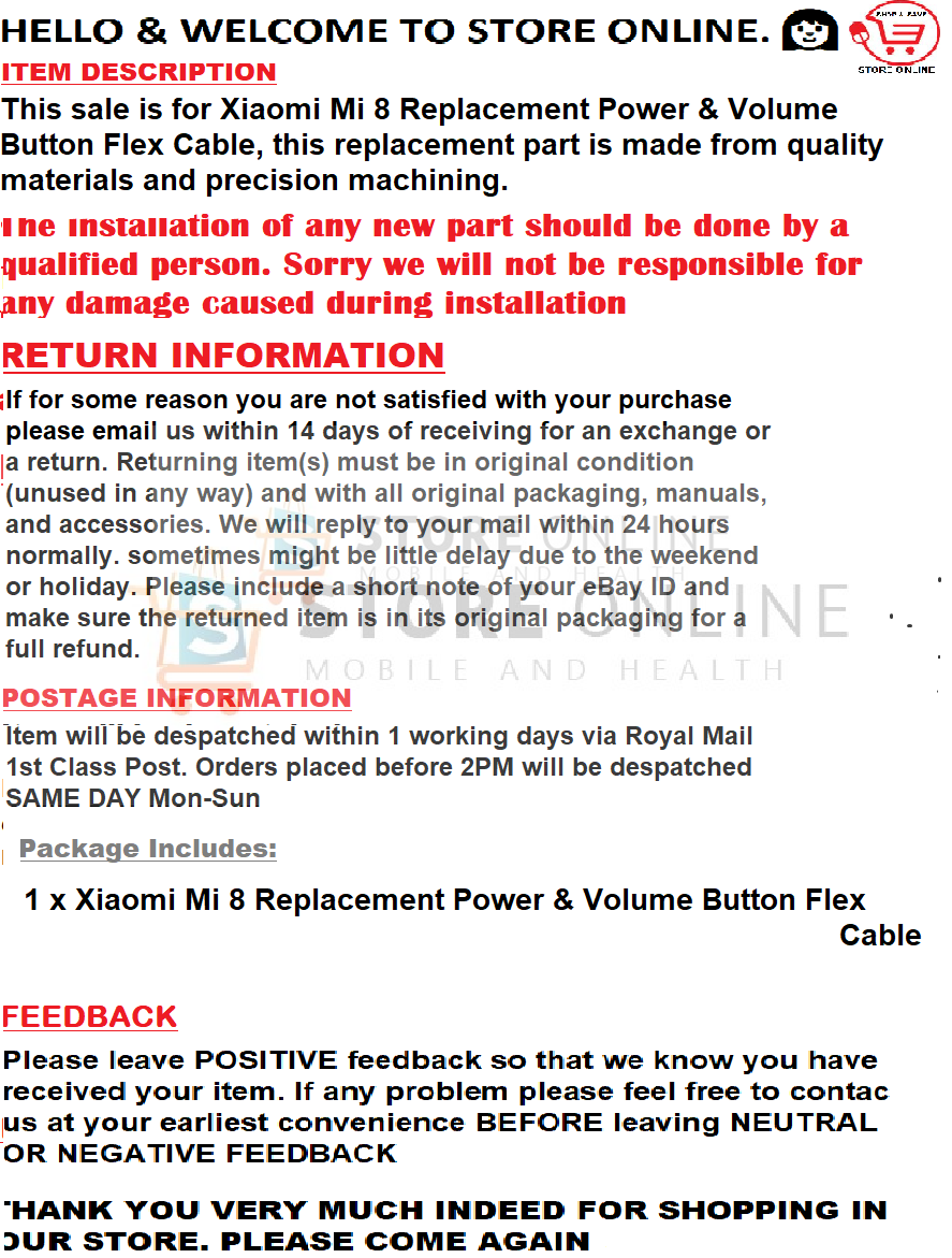 Xiaomi Mi 8 Replacement Power & Volume Button Flex Cable quantity